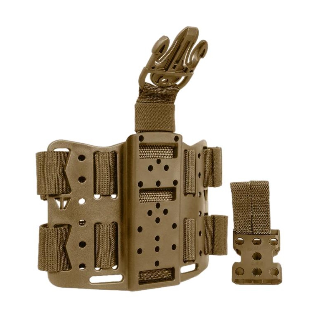 Nicht alle Drop Leg Plattformen sind gleich. Die Blade-Tech Drop Leg Plattform verfügt über eine Drehschlaufe und ein industrietaugliches VELCRO®-Gurtsystem, das einen vollen Bewegungsspielraum ermöglicht, ohne die Stabilität zu beeinträchtigen oder unnötiges, sperriges Material zu hinzuzufügen. Die Blade-Tech Drop Leg Plattform bietet eine stabile Montagefläche für die Befestigung von Blade-Tech Holstern und Zubehörteilen.