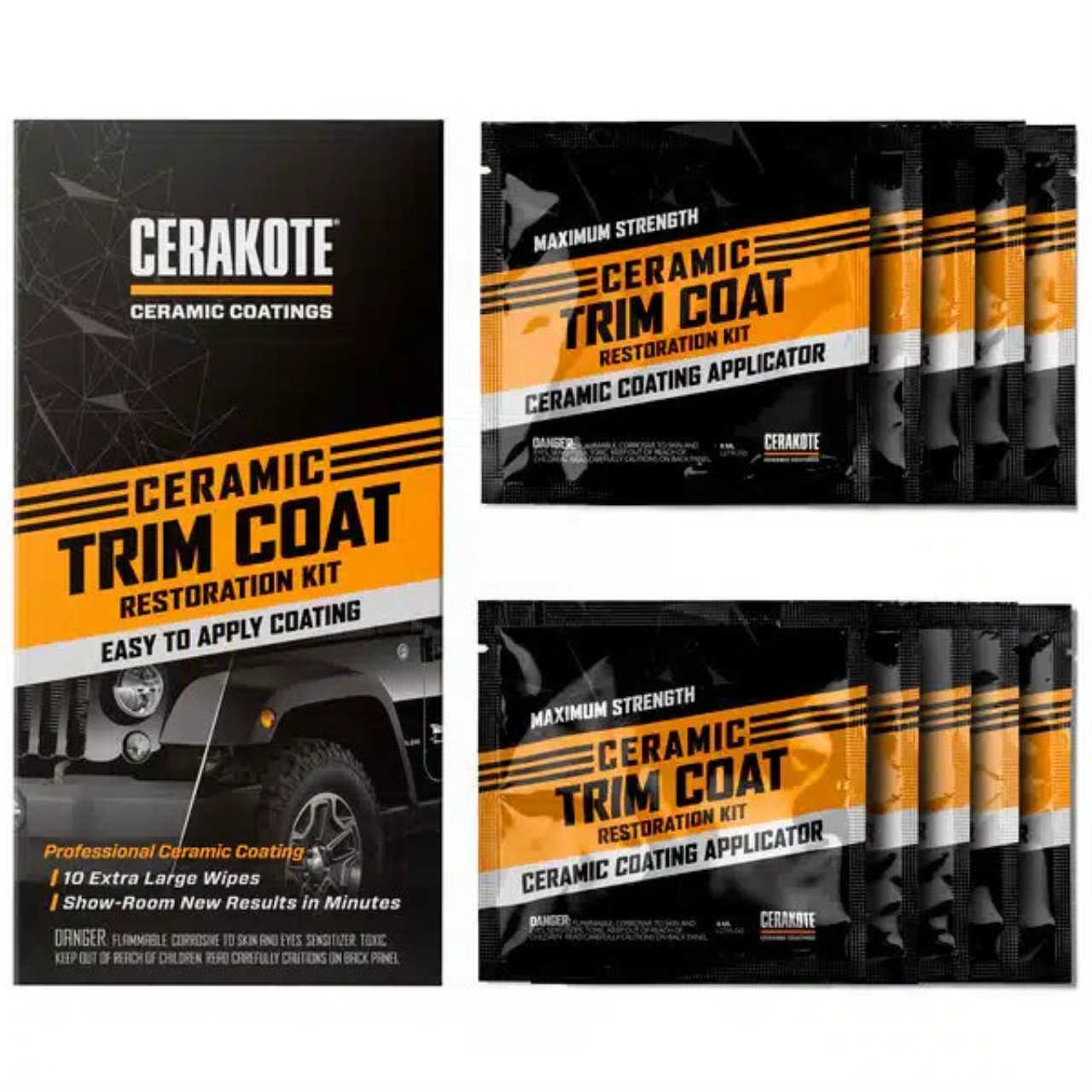Cerakote Trim Coat ist eine keramische Beschichtung, kein Trim Dressing, für die Restaurierung und den Schutz von Fahrzeugverkleidungen, die garantiert 200 Wäschen überstehen.