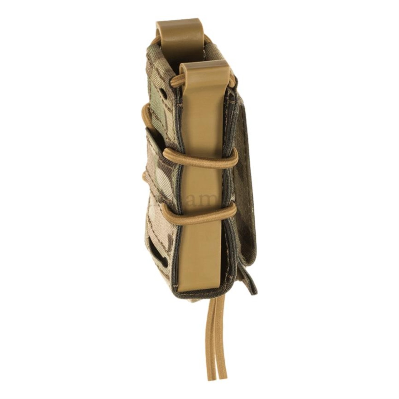 Die Pouch ist aus einem IRR-behandelten 500D-Cordura-Laminat genäht, dessen Rückseite aus einer verstärkten 1000D-Schicht besteht. Er ist mit einer Schockschnur und einer Polymerversteifung ausgestattet, um eine feste und stabile Platzierung des getragenen Magazins zu gewährleisten.