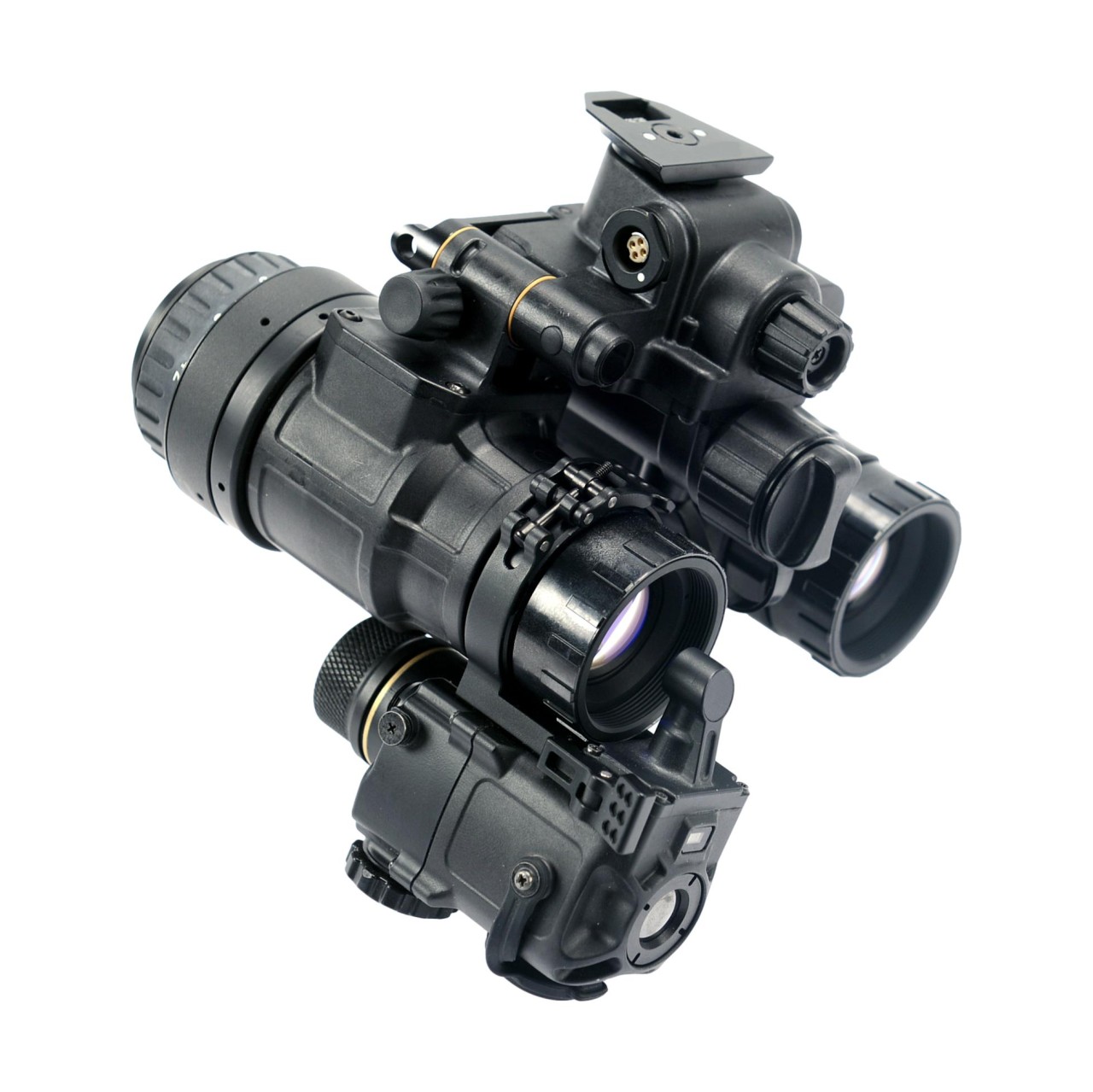Das leichte, glasfaserverstärkte Gehäuse ist äußerst widerstandsfähig. Hochwertige PVS-14 Okulare und Objektive sorgen für hohe Detailschärfe sowie eine individuelle Dioptrienanpassung.