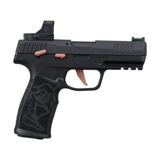 Mit einem grösseren Formfaktor als die P365 konzipiert, bietet die P322ROSE ROMEORS mehr Auflagefläche für einen sicheren Griff sowie zusätzliches Gewicht, um den gefühlten Rückstoss nahezu vollständig zu eliminieren. Die Pistole ist serienmässig mit einer ROSE ROMEORS Optik ausgestattet, die eine schnellere und intuitivere Zielerfassung ermöglicht und von Beginn an richtige visuelle Grundtechniken unterstützt.