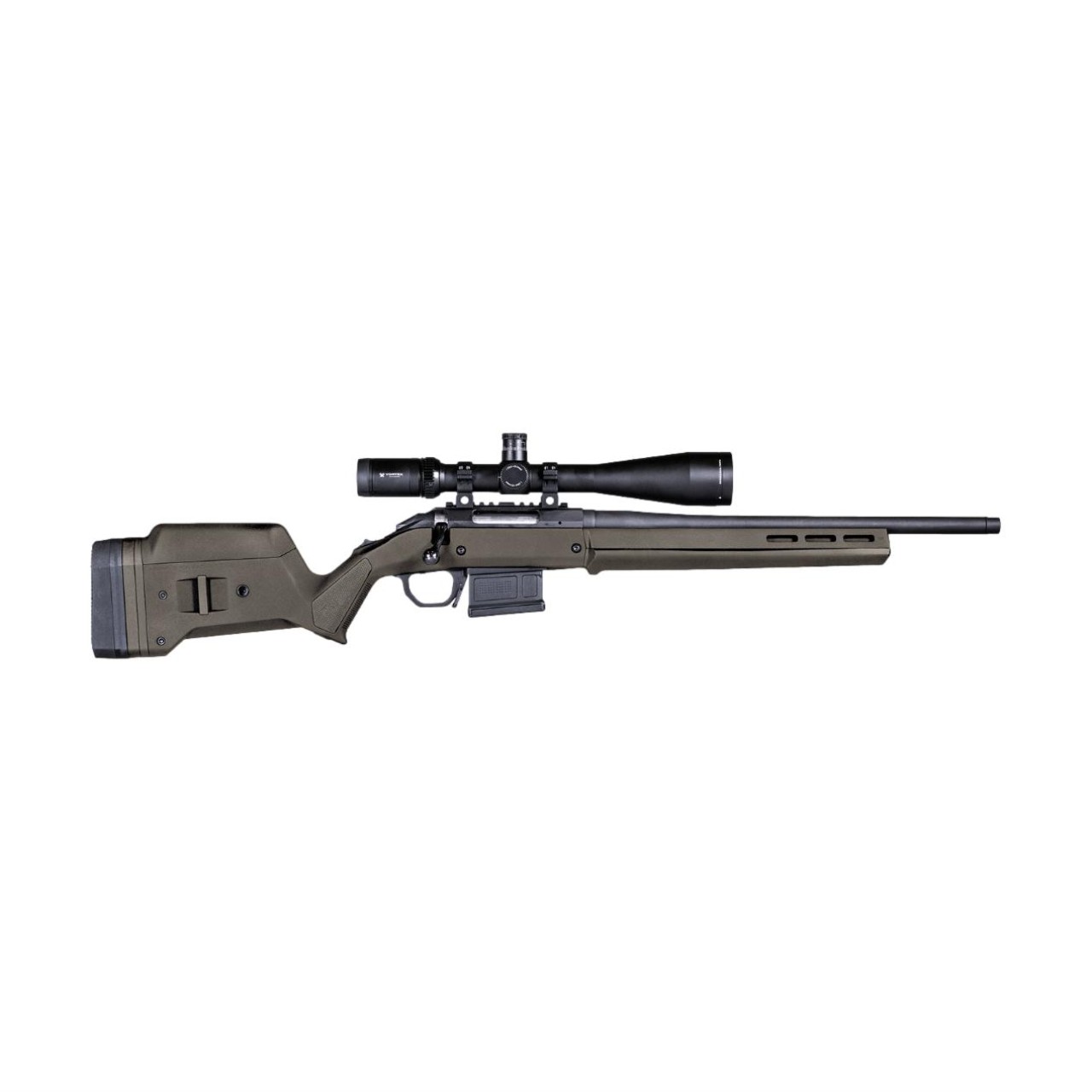 Im Lieferumfang enthalten sind unser Magpul Bolt Action Magazinschacht und ein PMAG 5 7.62 AC, mit dem das Gewehr mit abnehmbaren Boxmagazinen verwendet werden kann, ohne dass ein spezielles Inletting erforderlich ist.