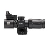 Das super kurze Vudu® 3-9x32 Zielfernrohr könnte die perfekte Optik sein. Das aus Flugzeugaluminium gefertigte Gehäuse ist kompakt, leicht und unglaublich robust. Die zweite Brennebene ist nur 6,8 Zoll lang und ist beschlag-, wasser- und stoßfest. Die Türme bieten eine ¼ MOA-Einstellung und sind beide zum Schutz mit einer Kappe versehen. Ein Drehrad bietet ein beleuchtetes Absehen mit 10 Helligkeitseinstellungen, und die CR2032-Batterie ermöglicht eine Betriebsdauer von etwa 300 Stunden. Das einzigartige Design bietet eine integrierte Basis, die auch mit allen Mini-ACOG®-Montagen aus dem Nachrüstmarkt kompatibel ist.