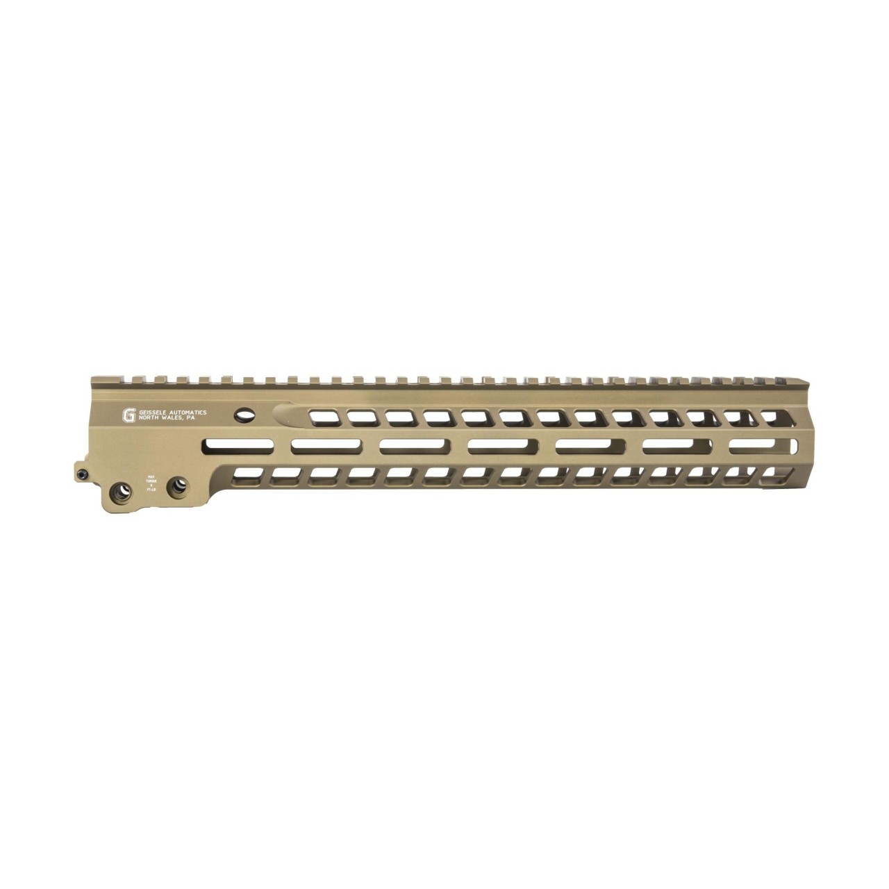 Die Verwendung der M-LOK-Technologie von Magpul in den Positionen 3, 6 und 9 Uhr ermöglicht dem Endbenutzer eine vollständige Anpassung und Modularität seines Gewehrs, um Lichter, Zweibeine und anderes Waffenzubehör sicher zu montieren. Die Geissele MK14 Super Modular Schiene ist in einer haltbaren und langlebigen Typ 3 Hartbeschichtung eloxiert, die entweder in Schwarz, ODG oder Geissele's DDC Finish erhältlich ist.