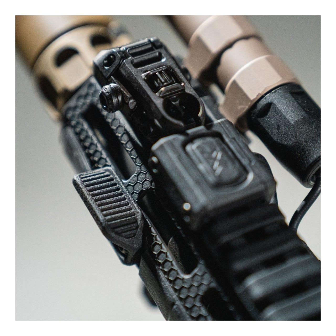 Das beidhändig nutzbare M-LOK Daumenauflage-Element (Thumb Shelf) verbessert die Mündungskontrolle und die Konsistenz der unterstützenden Handposition, sodass du schneller wieder ins Ziel kommst und Folgeschüsse beschleunigt werden.